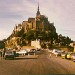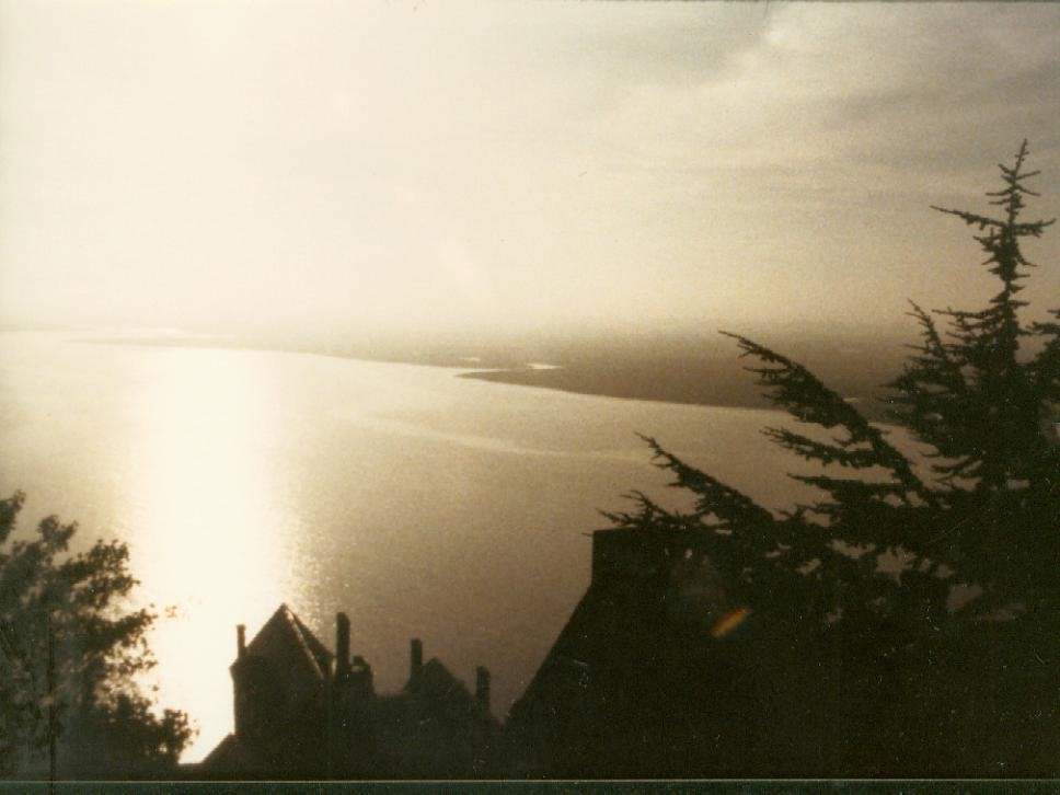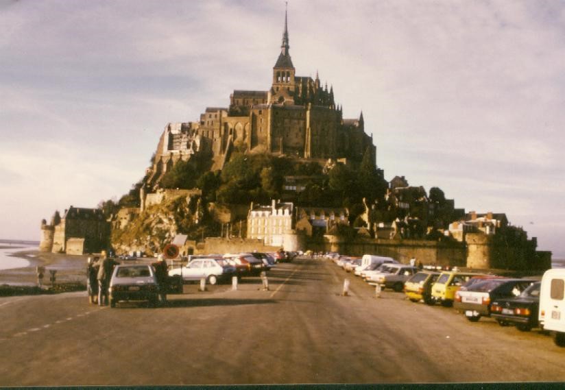 Mont Saint-Michel is an island castle built in a bay located between Britanny and Normandy. The location is superb, the Mont itself and its castle, church, ramparts, etc.are well worth the visit. When they say in the brochures that the tide comes in at the speed of a galloping horse, they're not kidding. In one hour (the time to eat dinner), we went from low tide and sandy beaches to being on an island.
