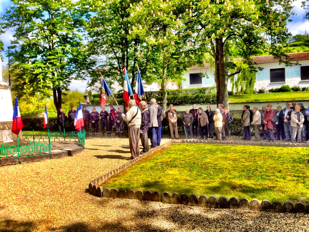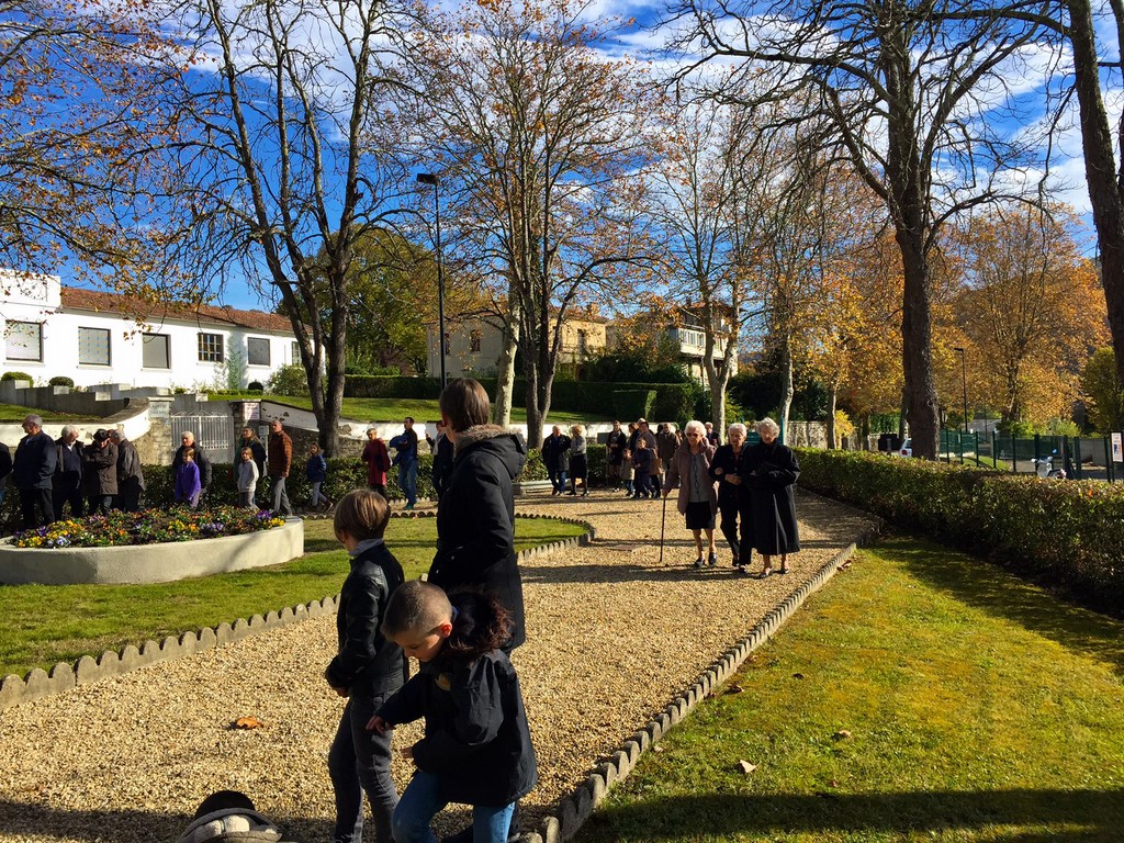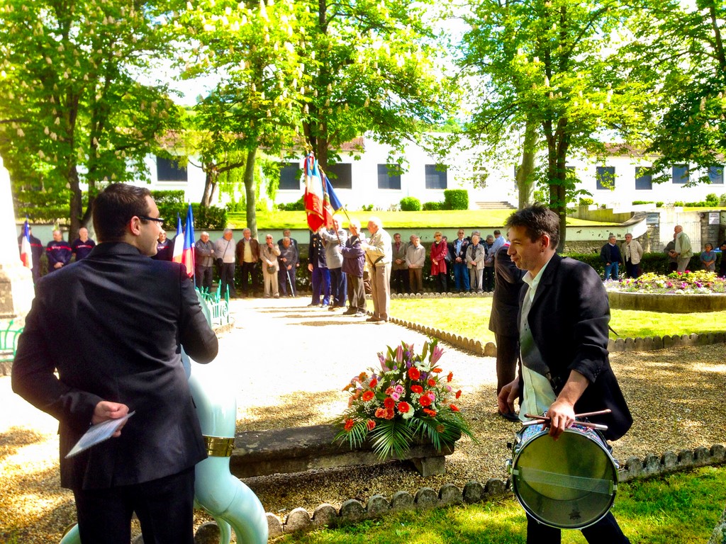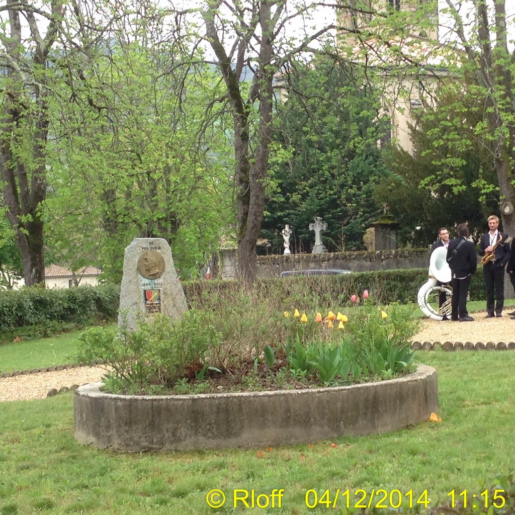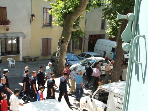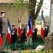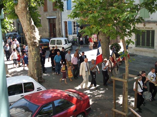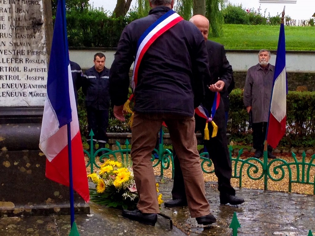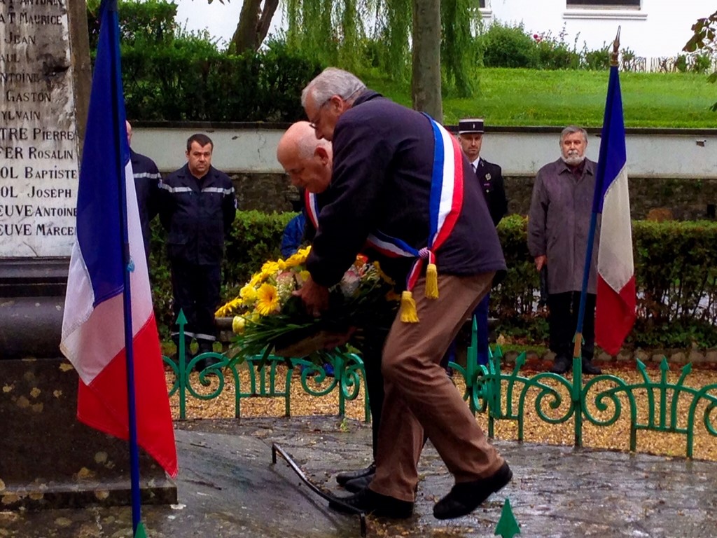The ceremonies start when the band opens the procession at the Town Hall, followed by the flag bearers, then the Notables and the firemen. We go to the Monument aux Morts where a wreath is laid by the Mayor.
