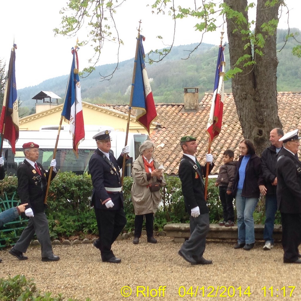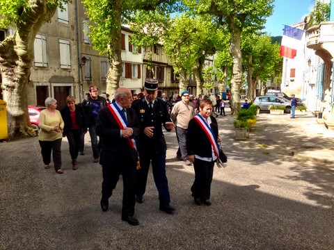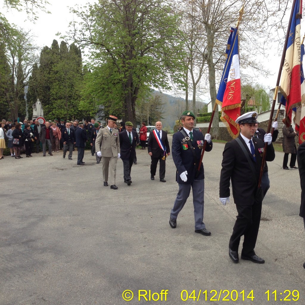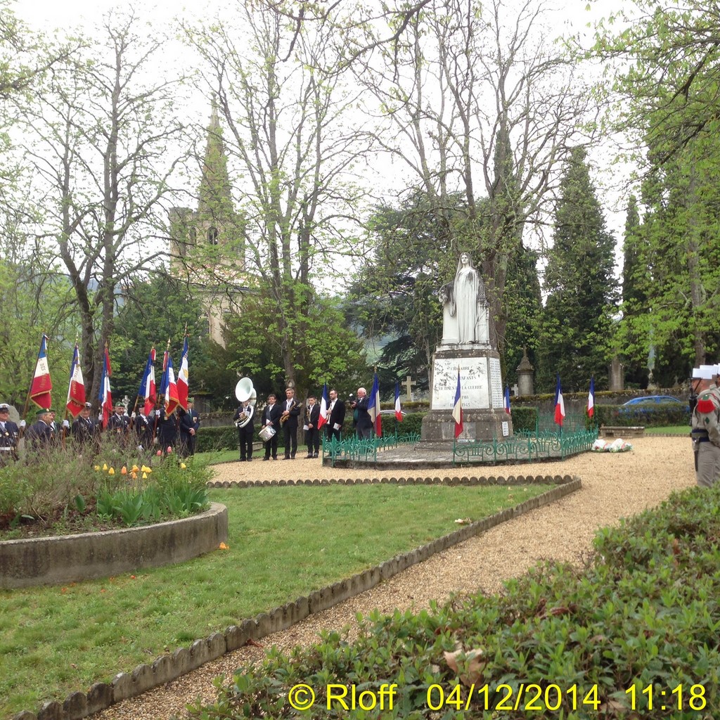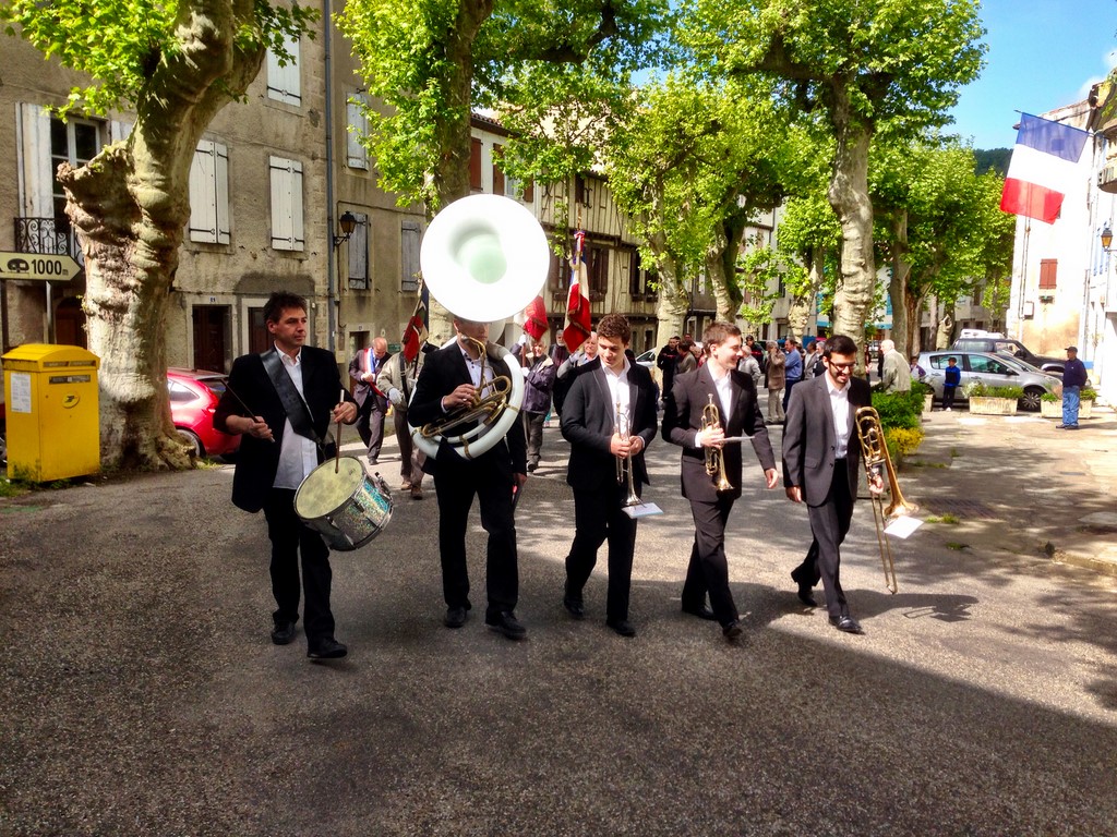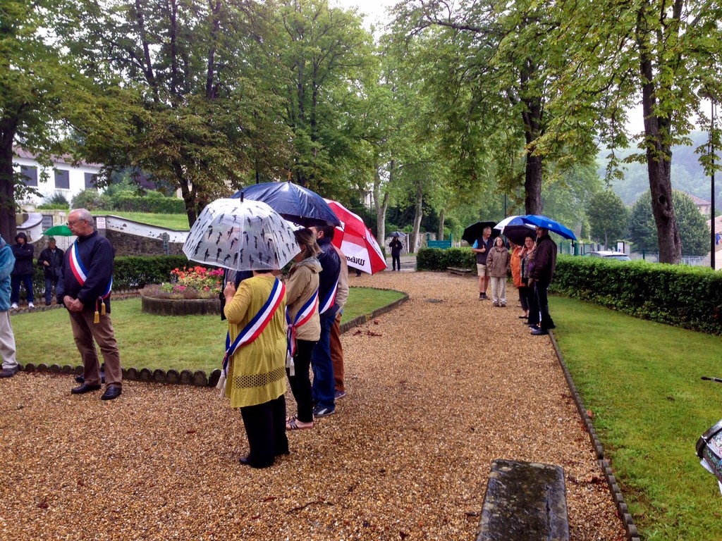 The ceremonies start when the band opens the procession at the Town Hall, followed by the flag bearers, then the Notables and the firemen. We go to the Monument aux Morts where a wreath is laid by the Mayor.