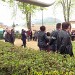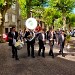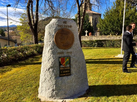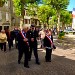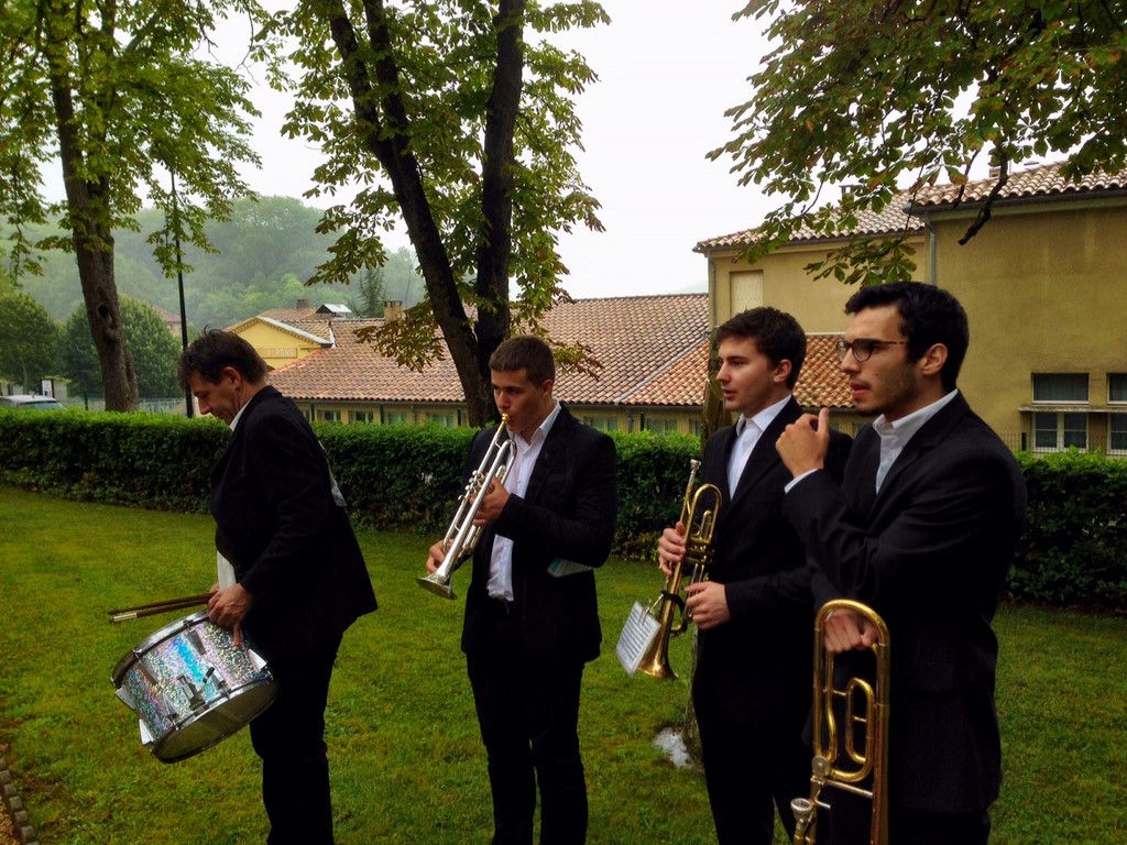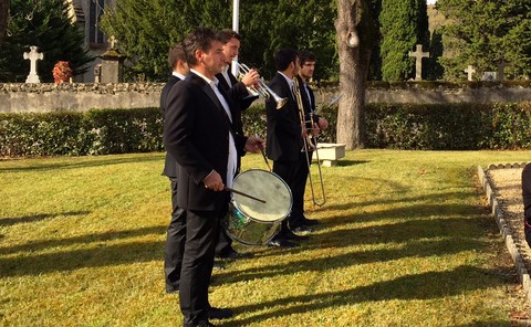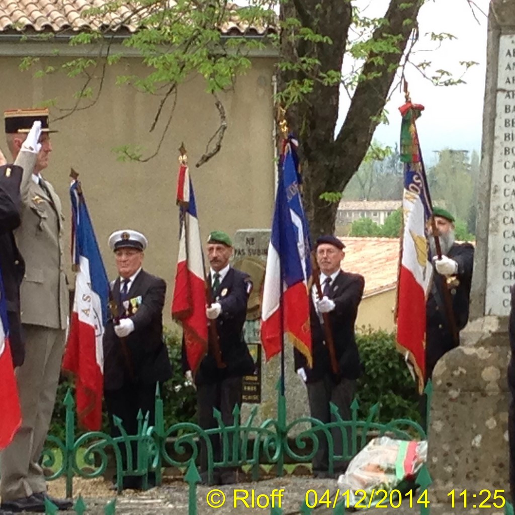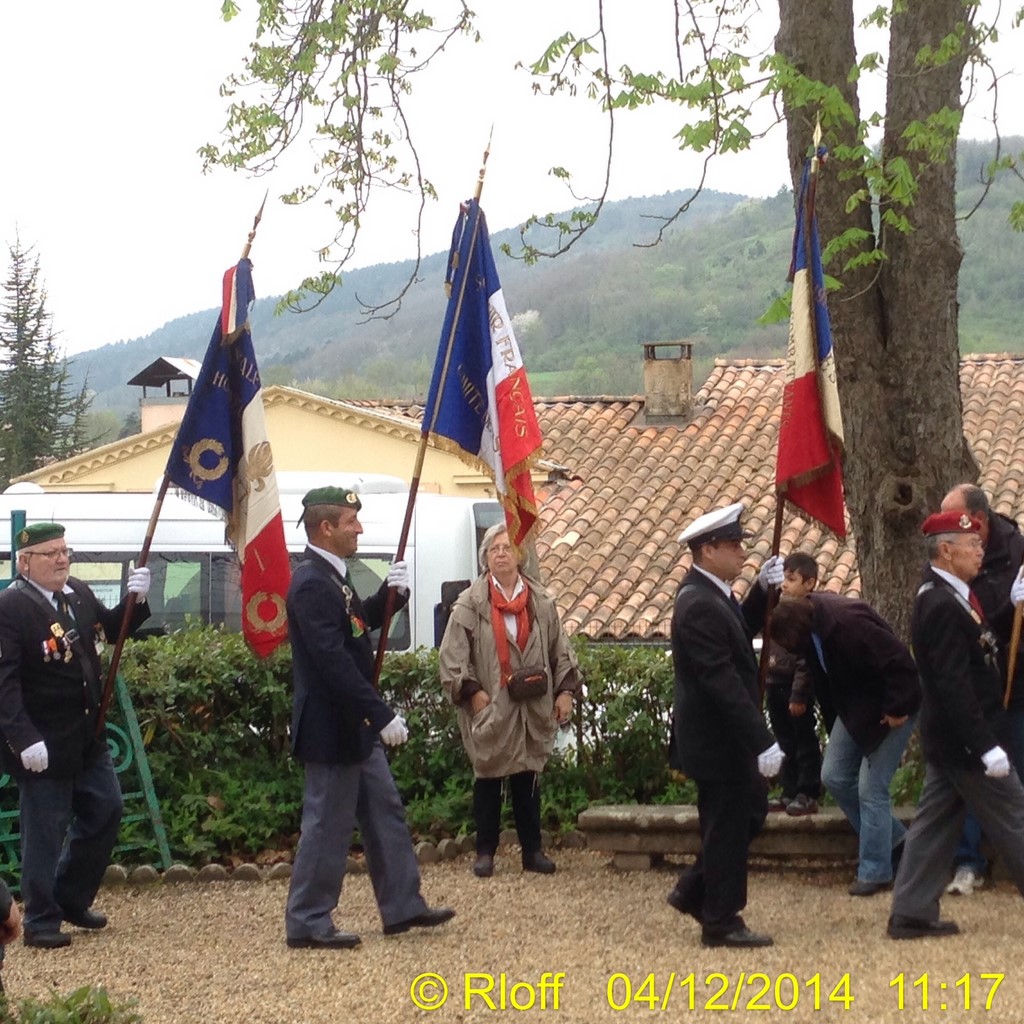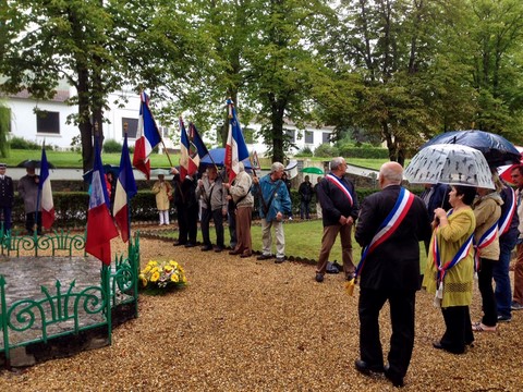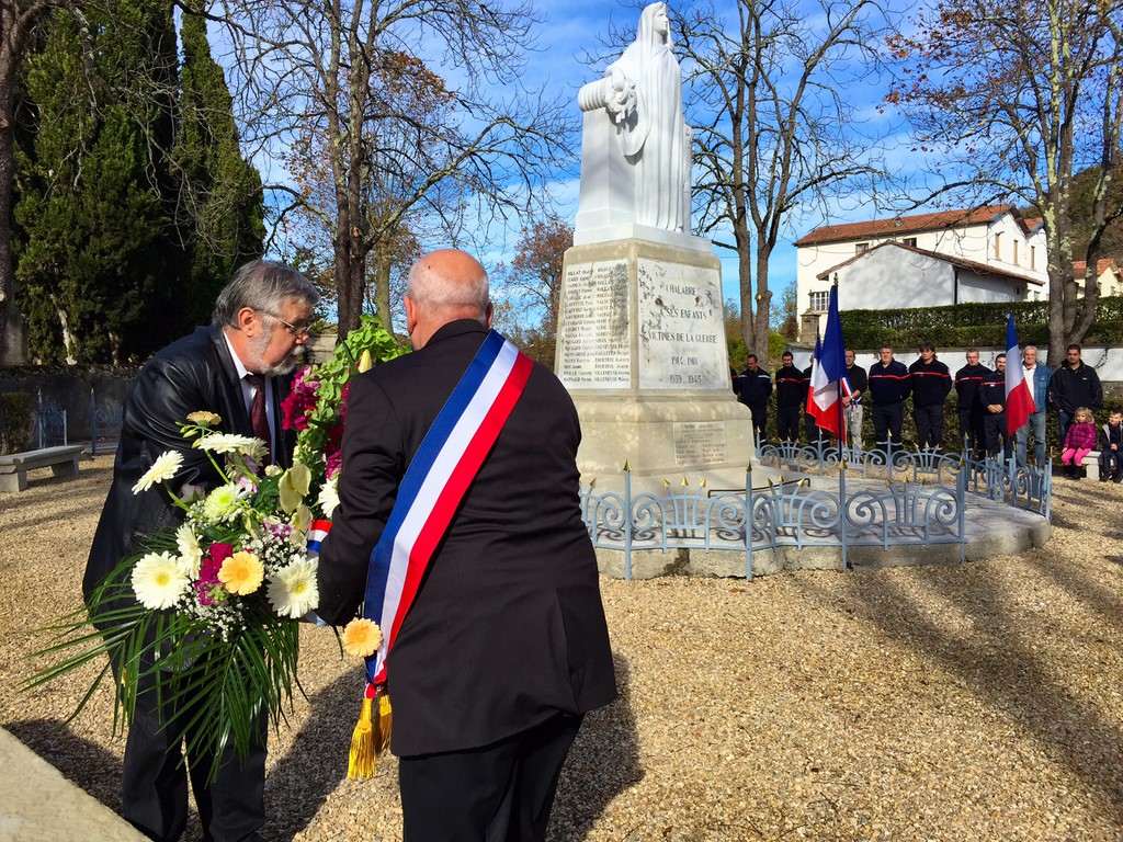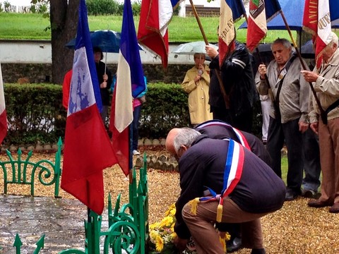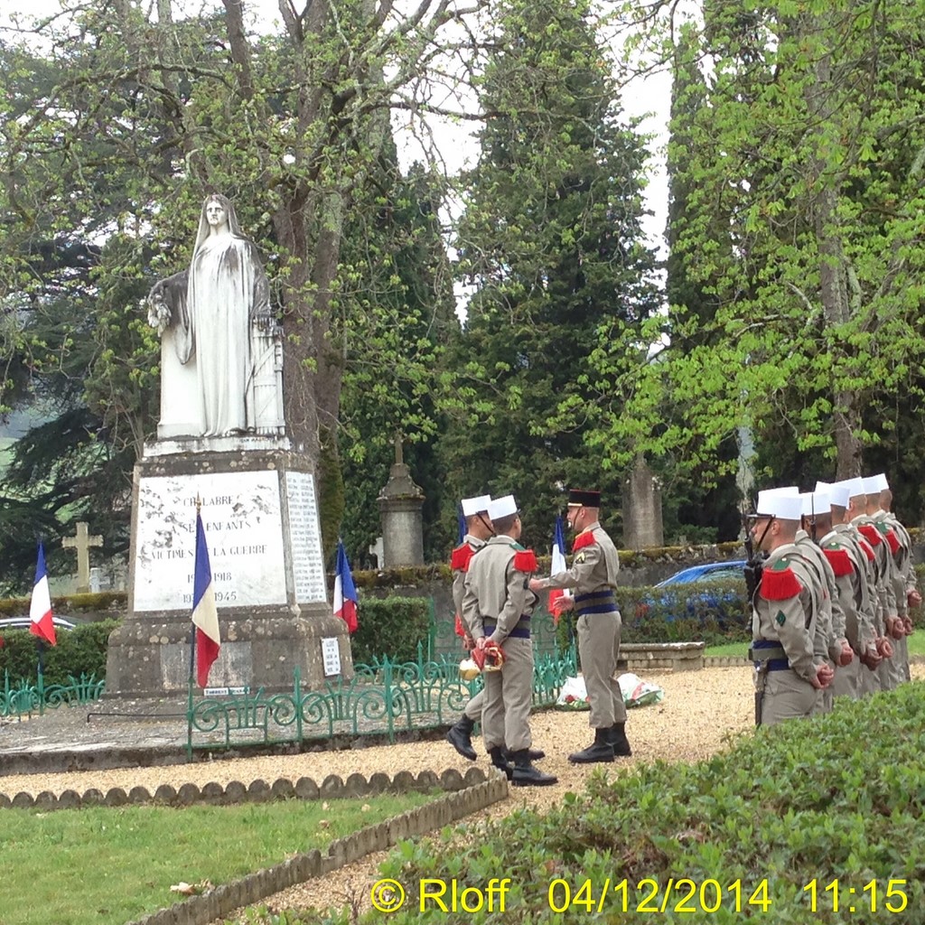 The ceremonies start when the band opens the procession at the Town Hall, followed by the flag bearers, then the Notables and the firemen. We go to the Monument aux Morts where a wreath is laid by the Mayor.