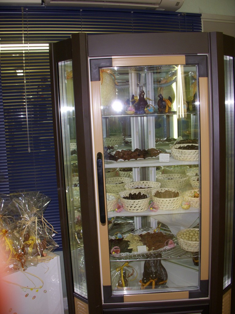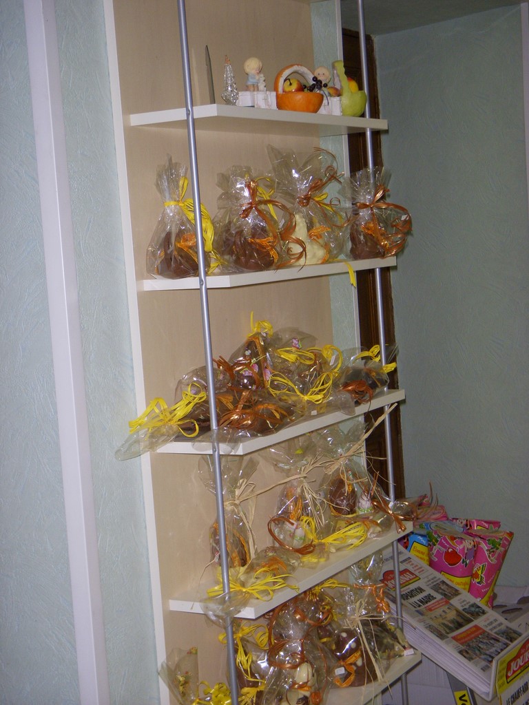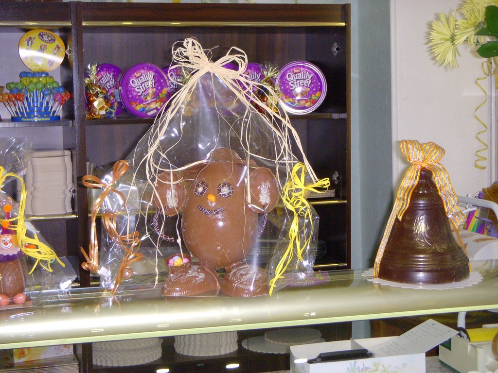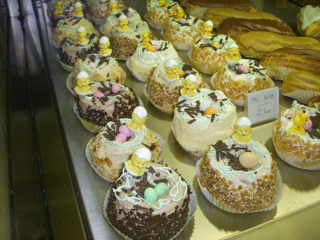 After Philippe and Nadia Corlet left, we were all understandably concerned about their successors. Hallelujah! The new bakers are Gerard and Catherine Denis, formerly from Albi. Gerard is a master pastry chef and chocolate-maker. The store looks as glorious as before, and the offerings just as yummy... As Easter approaches, chocolate is king...