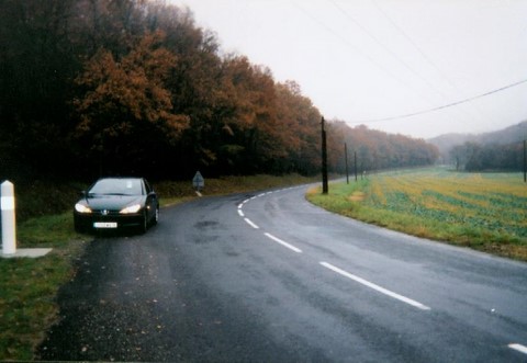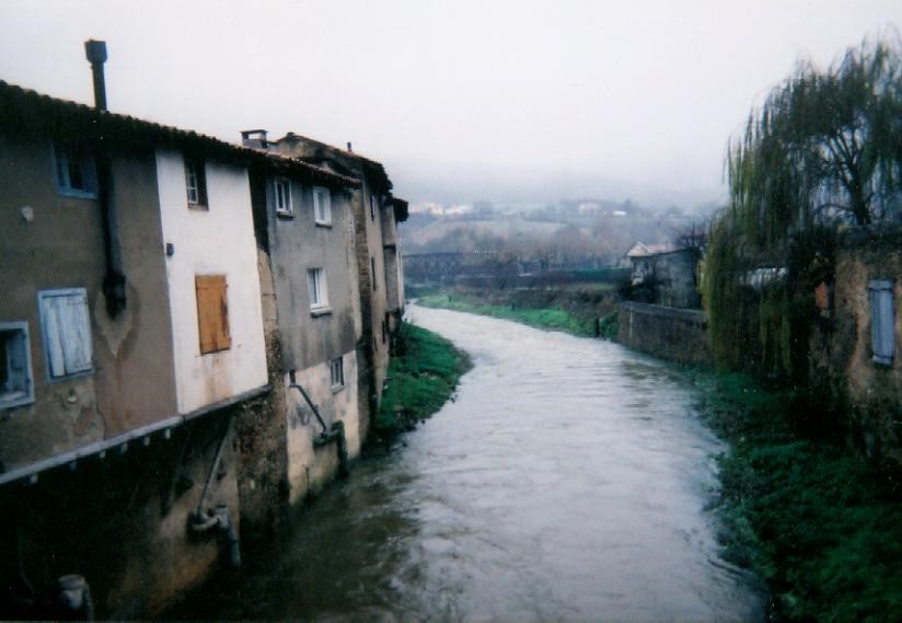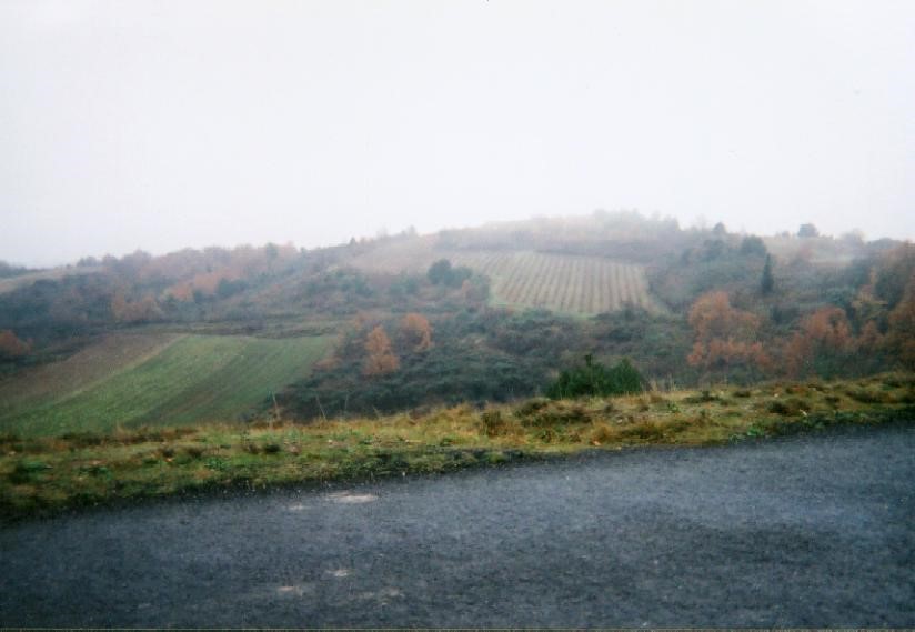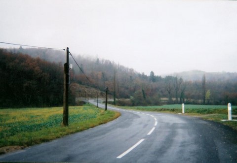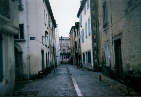 These photos were taken during out initial Dec. '04 "scouting" trip on a disposable camera on a late December afternoon. It would have taken the talent of a Ridley Scott to capture the soft, misty quality of the light, the low clouds and the rust-to-dark green pastels of the vineyards and forests, or the cozy, medieval charm of Chalabre...