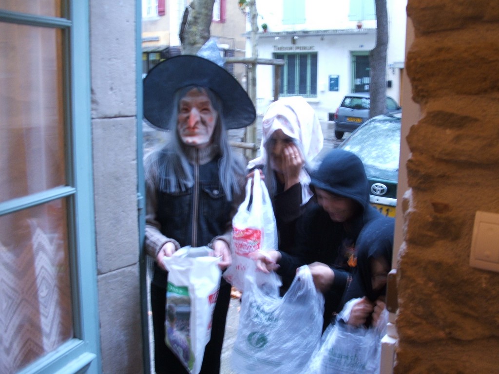 The Witches are coming! The Monsters are here! "Gimme, gimme!" said the Little Witch. A disappointed vampire (candy is running low). The full Coven makes its entrance; the horror, the horror! And finally... Mickey!.
