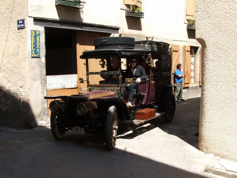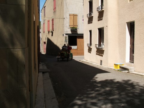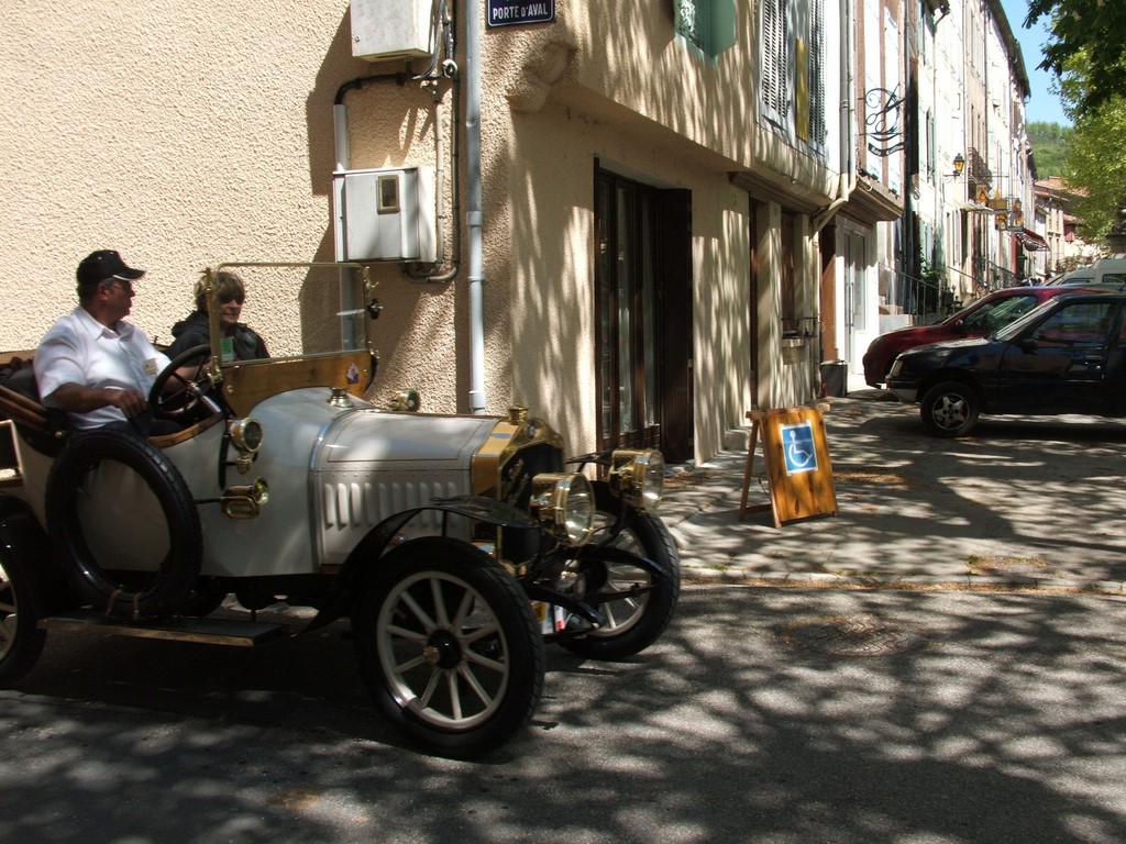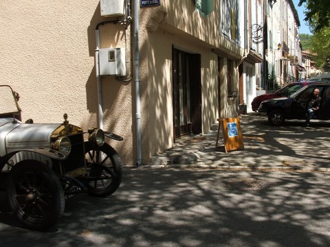 In French a tacot is an antique car. There was some kind of antique car rallye/convention being held in the neighboring village of La Bastide sur l'Hers and the proud owners of these cars paraded through Chalabre.