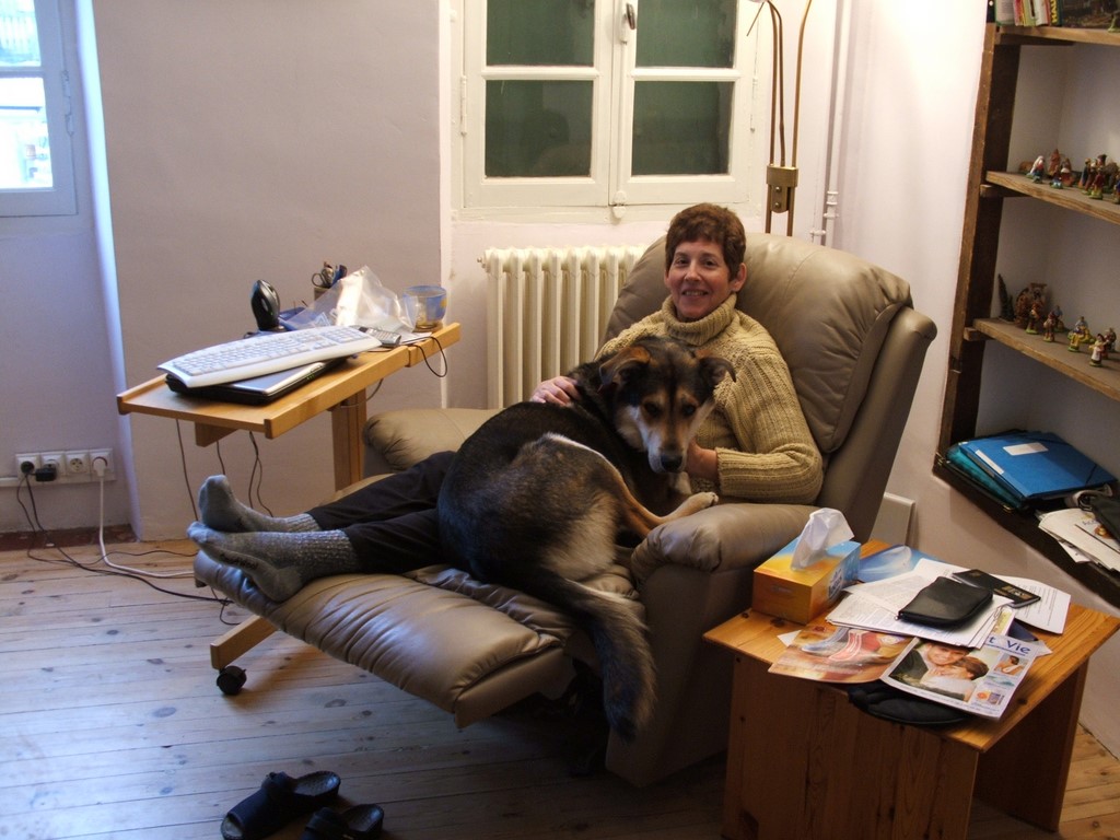 The day I met Maggie, it was so clear that she was afraid. But it was also clear that she wanted desperately to be loved and once again have a family of her own. As the weeks of our togetherness went by, it was such a joy to see her fear drop away. She has so much love to give, and. I feel so lucky that Jean-Marc and I were the ones chosen to receive it. Does she love?. It takes only one look into her laughing amber eyes to see that answer.