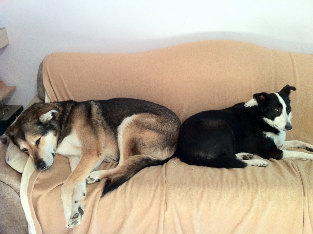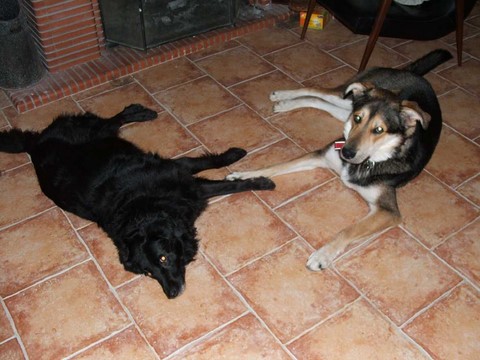 Puis, l'année dernière, les mêmes puissances mystérieuses qui nous avaient envoyé Maggie nous envoyèrent Shmoo. Nous n'avions jamais désiré avoir plus d'un chien à la fois pour tout un tas de raisons. Mais non seulement Shmoo nous choisit, mais Maggie choisit Shmoo! Au lieu d'être jalouse et d'essayer de garder "ses humains" pour elle, elle lui souhaita la bienvenue, joua avec lui et s'épanouit en sa présence.
