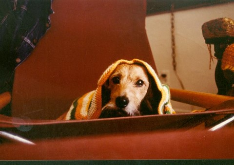 Finally, with some slices of ham in hand, he came with me. Poor little dog, he wanted that ham, but he was so afraid. Finally, he ate it, growling as fiercely as he could the whole time. With the help of a neighbor we managed to capture him. As soon as he was in my arms, he melted against me in total surrender. We decided to call him Taffy, just so that we had a name to use until someone claimed him. Taffy lived with us for eighteen years.