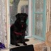 and a suspicious-looking bronze statue in the b.g. which we strive to ignore... Miz Peaches LaRoo, B.C., was thrilled to meet new "Big Brother" Shmoo Alexander, whom we trust, sort of, except when we don't...