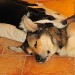 The time between Saturday and Tuesday crawled by at a snail’s pace. I went out and bought her everything I could think of that she might want. Then, she was here. That first night she was so afraid. I sat on the floor beside her for hours, stroking her head and belly. She slept on the floor next to my side of the bed all night. She got up a dozen times to put her head on the bed to reassure herself that I was still there. In the morning she chattered and sang with happiness when I awoke. I knew. I knew that morning that it had happened, finally… The relationship I had always sought. I had found the dog of my dreams, and I was happy.