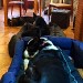 Ah, She pats my head. That means she knows that I love her. I can take care of my second job: making sure the humans are warm enough. I jump up on the bed and get in between the two of them. They don't realize how difficult it is to keep them both warm. I need to stretch out as long as I can so that I can reach them both.