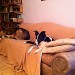 At last, They're up. Now the important part of the day can begin. I lay and watch to see what They will do. He goes to the far room where he sits all day and touches the box on his desk. Sometimes He also talks into the thing in his hand. I don't understand what he is doing, but he must like it 'cause he does it a lot.