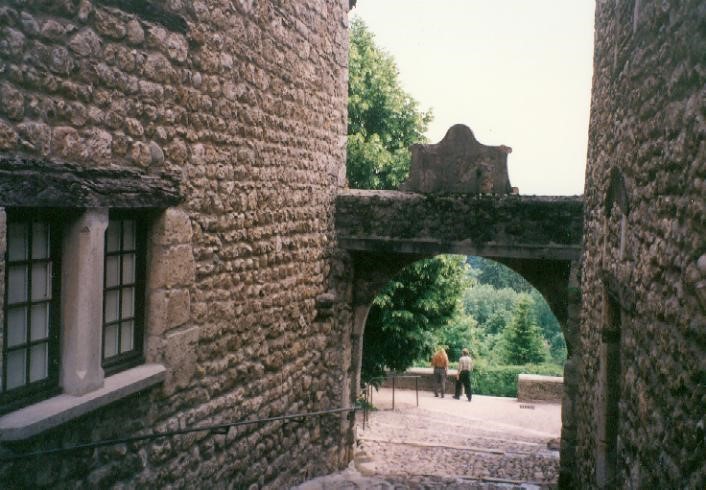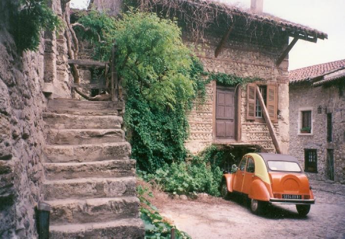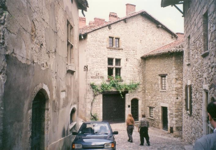 The Ostellerie du Vieux Perouges is the ONLY "real" hotel-restaurant within the city walls. I suppose there are other things on the menu, but what I recommend with all my heart is the Poulet de Bresse, a local chicken raised on pure grain according to traditional methods. It is wonderful! This truly is a chicken that is unlike anything that we modern folk are used to eating. Like the finest wines it is an "appelation controlée" which means that the breed as well as the conditions in which the birds are raised are guaranteed to be of a certain quality. Have it roasted and served with a fabulous "gratin dauphinois" (marvelous potatoes!) and you won't be disappointed.
