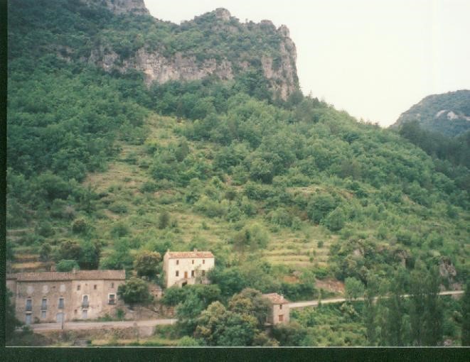 The Chateau des Madières at Madieres, a very small town in the Gard, is a beautiful hotel lovingly restored by its owners. Overlooking a canyon-like vallee in the Cevennes, not far from the birthplace of the famous Roquefort cheese, the Chateau combines outstanding location, modern comfort and a truly superb restaurant. Even if you aren't staying at the Chateau, the restaurant is definitely worth a visit. There's a marvelous view of the rocky hillsides, but you won't pay attention to the view when you're eating the sublime food. If you are a fan of roquefort cheese, you will have a hard time choosing amongst the many roquefort-based dishes on the menu. JM and I made each other choose different things so we could each taste what the other one had. Neither of us was disappointed. It has unfortunately gone out of business.