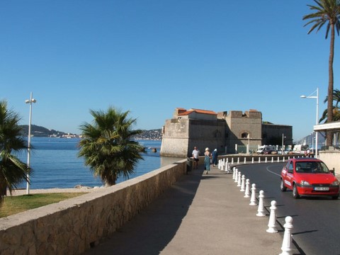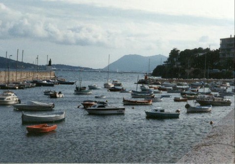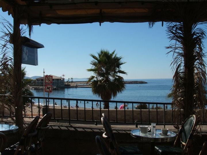 The photos offer views of the old Fort Saint-Louis (now a yacht club) near the tiny harbor of la Mître, the café La Reserve twhere we used to have our breakfast; the beaches ; across the Bay, the peninsula of Saint-Mandrier with its French naval base.