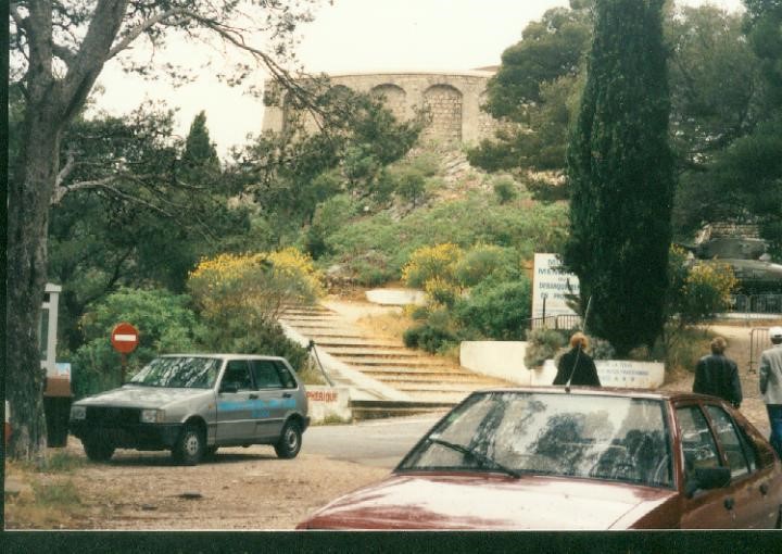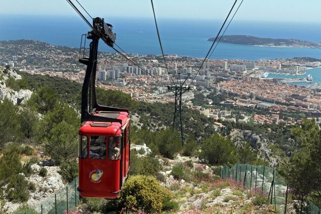 The Mont-Faron is THE mountain that towers above the harbor city of Toulon. You reach the summit either by taking a cable car, or by driving on a very narrow and scary mountain road. At its top stands a military museum celebrating the Allied liberation of France, a zoo, a church and plenty of roads and trails for nature lovers.